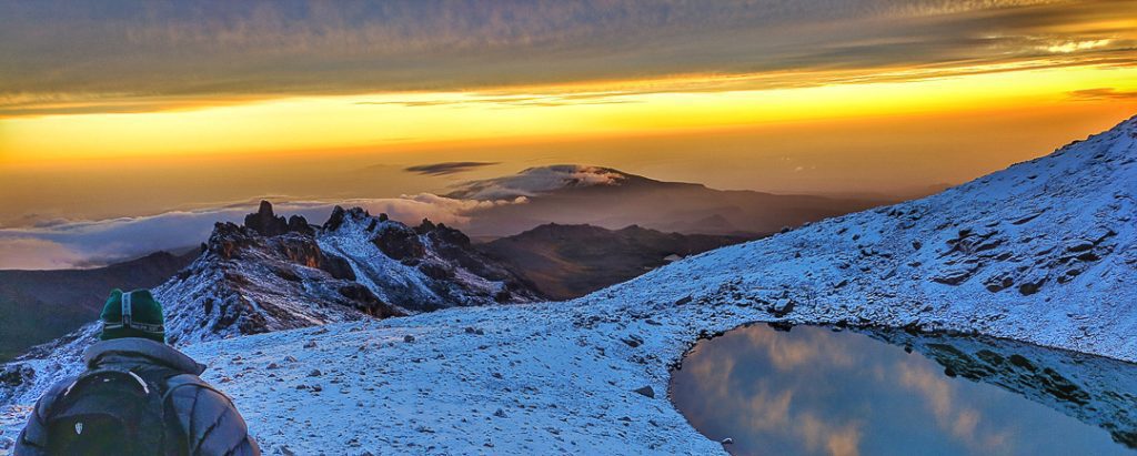After breakfast embark on the walk up from the lake Michaelson crater to round the cliffs and come out at Mintos Hut. Once you get to Minto’s hut visit the adjacent Hall Tarns. A short 5-minute walk to the side of these Tarns is a sheer cliff drop called The Temple, with a stunning view of Lake Michaelson directly below. Proceed onwards to circumnavigate the peaks around the mountain to end up at Austrian Hut. 4790m above sea level. This hut is at a vantage point with the peaks so close by and hosts the highest toilet in Africa. The walk to the summit from here will be a short and almost guaranteed approach. Dinner and overnight at Austrian Hut.